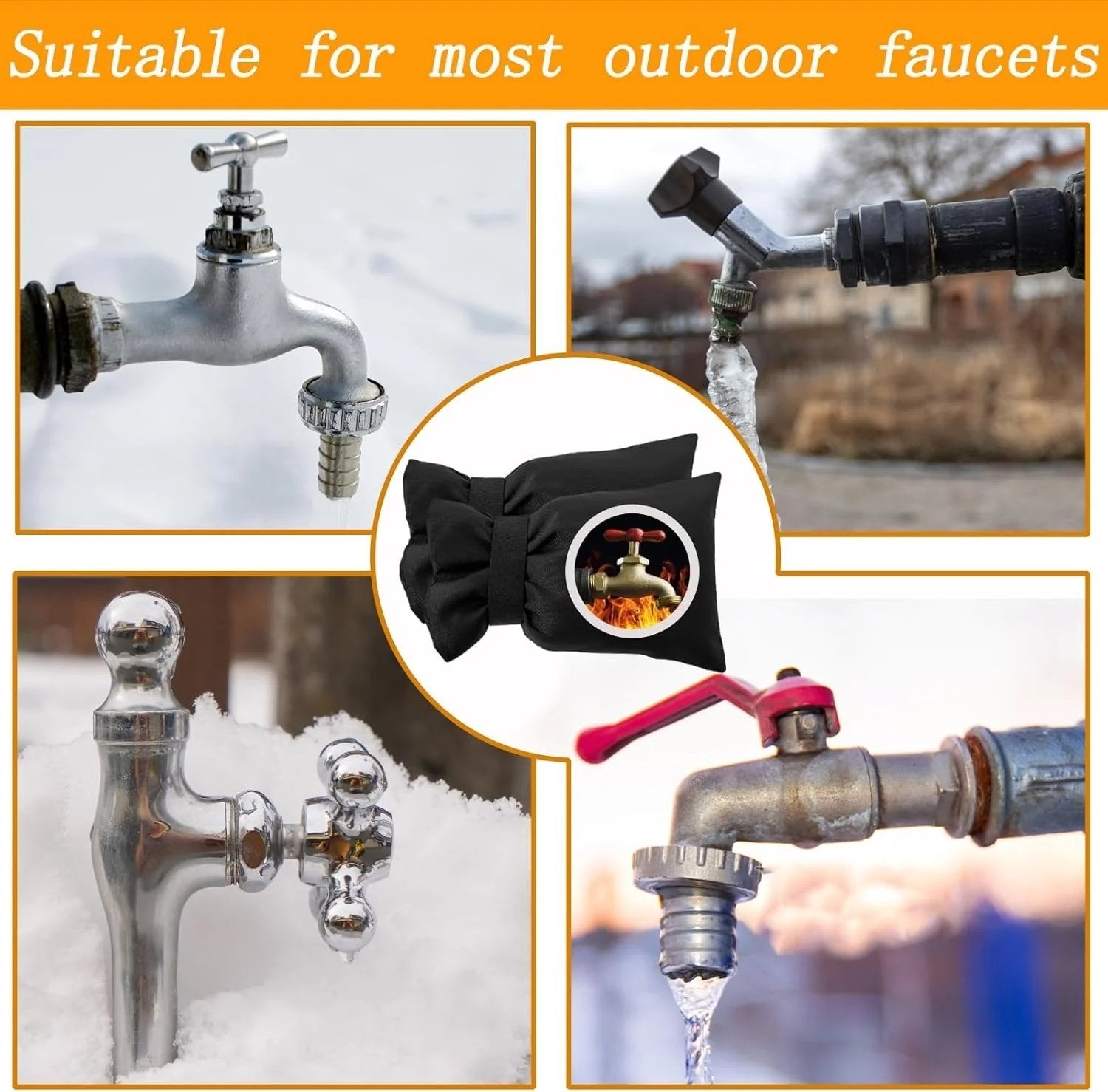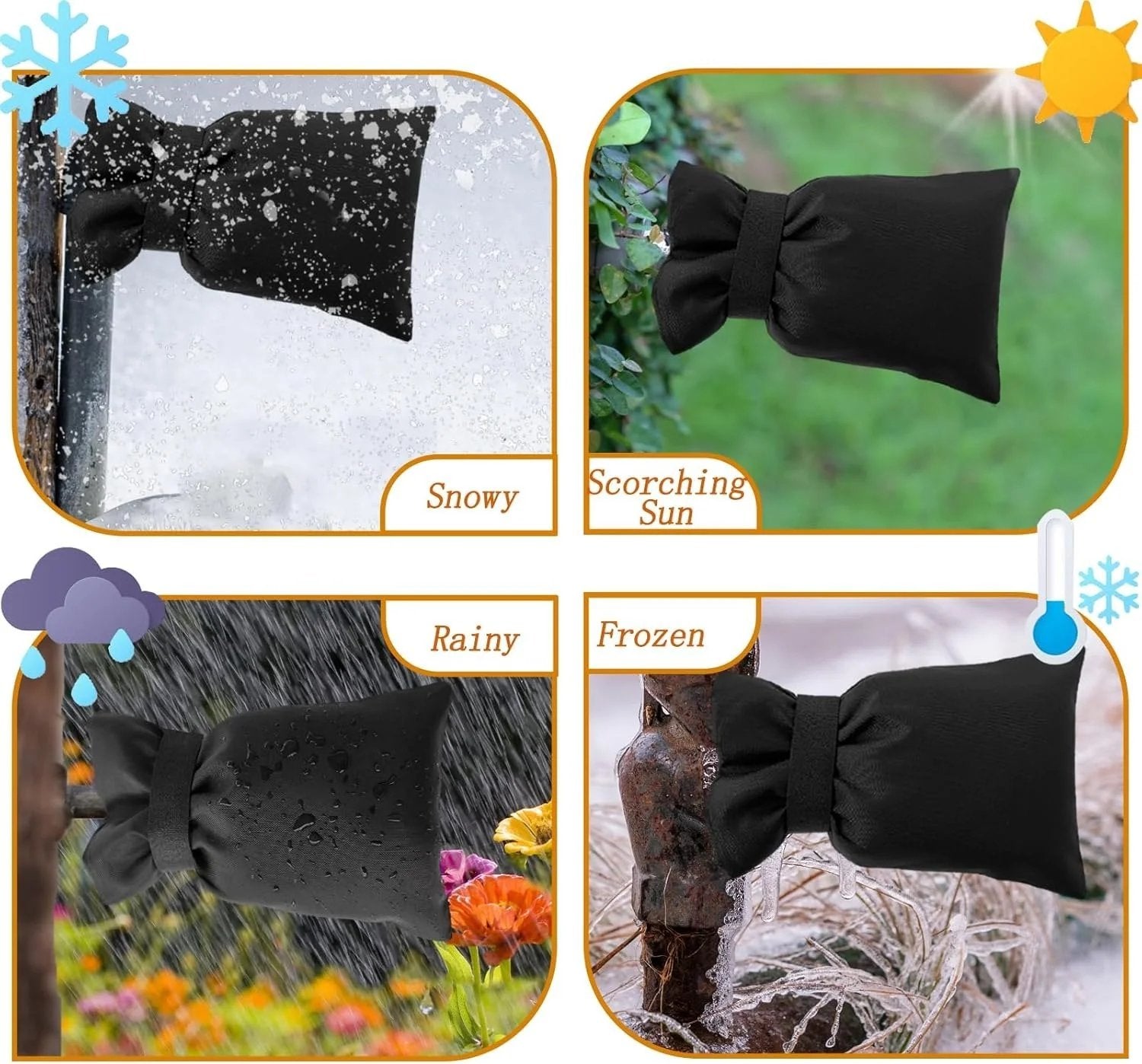 High quality faucet cover material can protect your outdoor faucet from freezing and bursting in winter.Even in hot summer or severe weather conditions such as rain,snow,wind,frost and sun exposure heating,it can prevent the faucet from being affected by the hot sun or rust.
